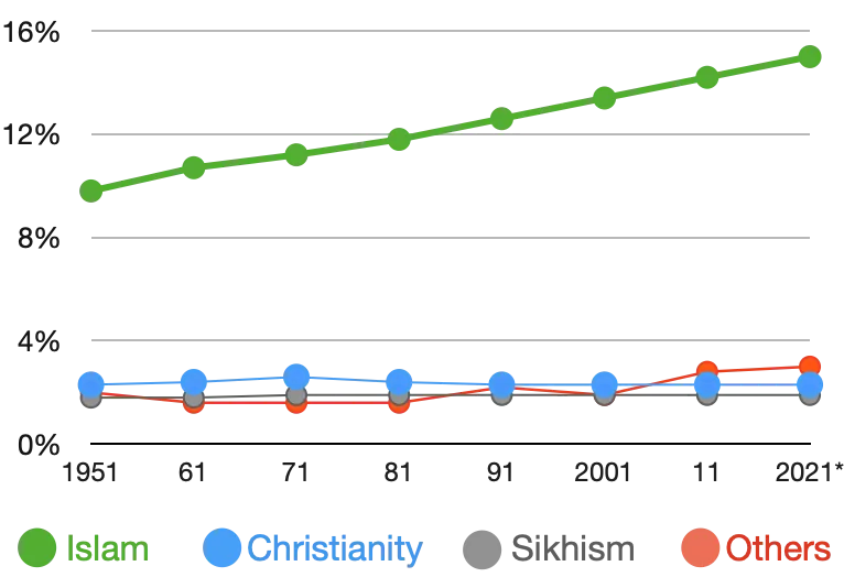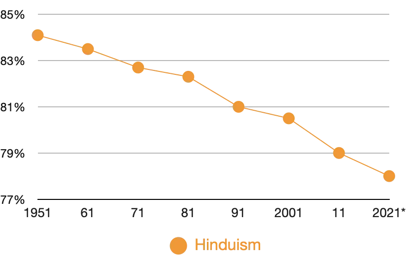 Growth and decline of major religions in India